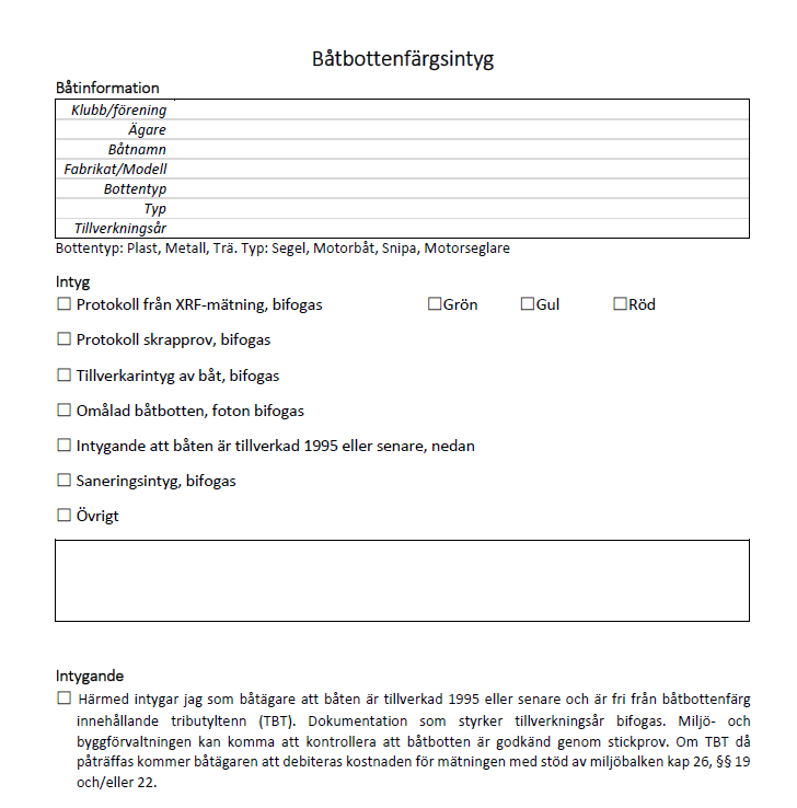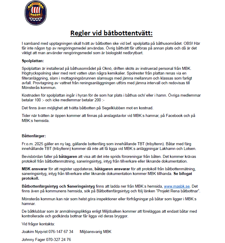 Regler för Båtbottentvätt samt Båtbottenfärgsintyg finns att ladda ner till höger.